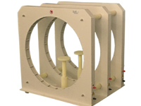 HM-3-900型線圈就是在亥姆赫茲線圈的基礎(chǔ)上,改進(jìn)后的三線圈亥姆赫茲線圈組,經(jīng)過(guò)計(jì)算模擬仿真實(shí)踐,三個(gè)線圈的半徑都為R時(shí),中心線圈到兩個(gè)線圈的距離為0.7R, 中心線圈的匝數(shù)為兩邊線圈匝數(shù)的0.5倍,